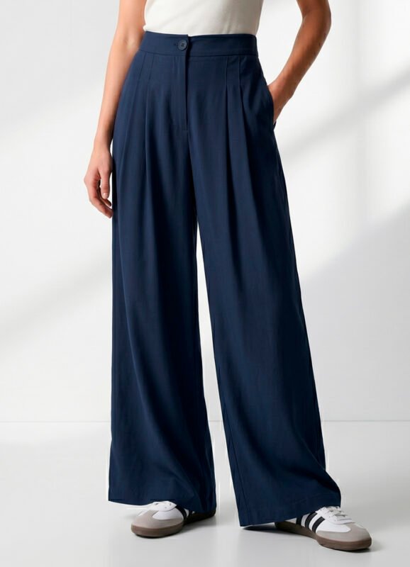 Calça Pantalona com Pregas Feminina Off White Sob com Bolsos