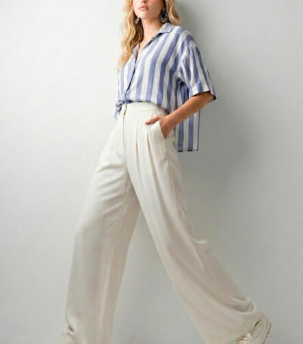 Calça de Linho Branca Pantalona Alfaiataria Feminina Sob