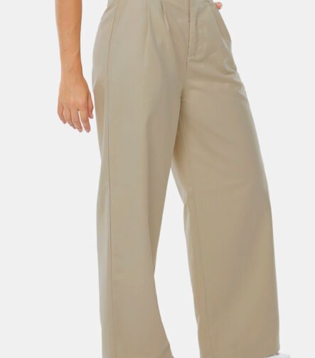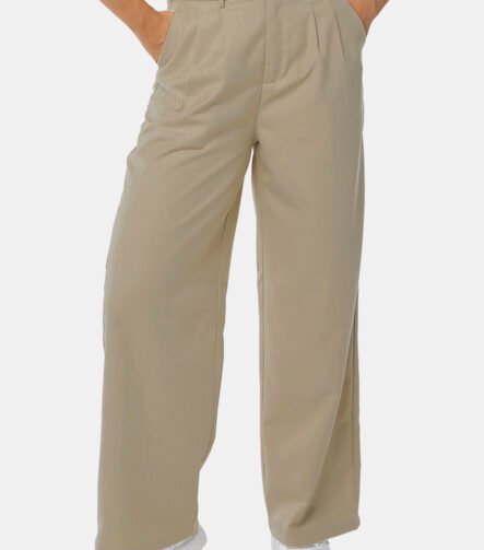 Calça de Pregas Bege Mocha Cintura Alta em Viscose com Elastano