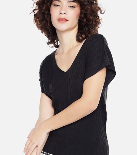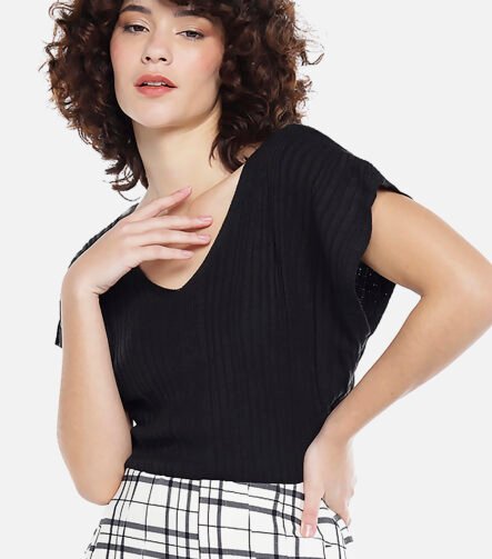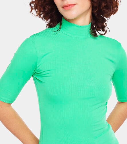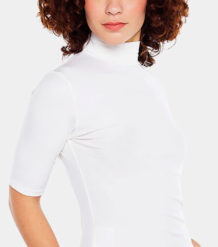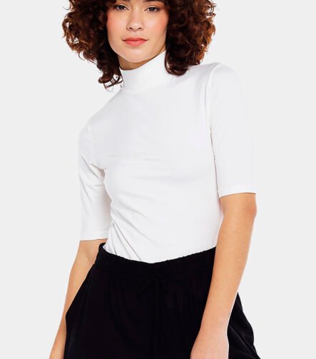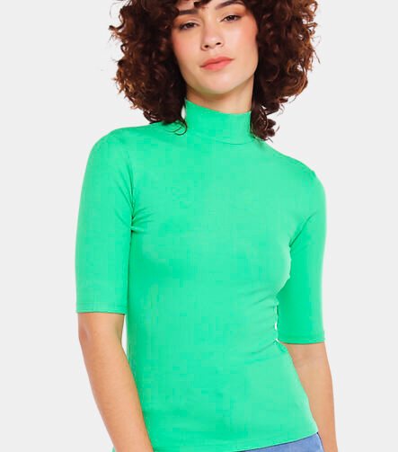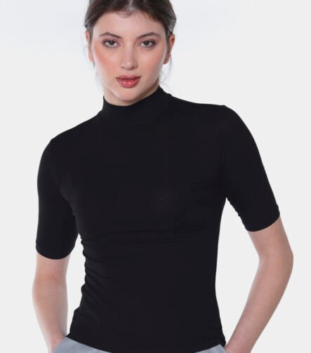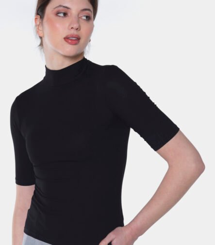 Blusa Preta Manga Curta Básica Gola Alta em Viscose