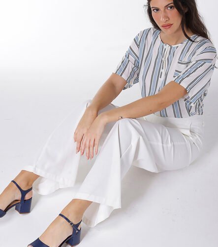 Blusa de Viscose com Mangas Listrada Azul Sob
