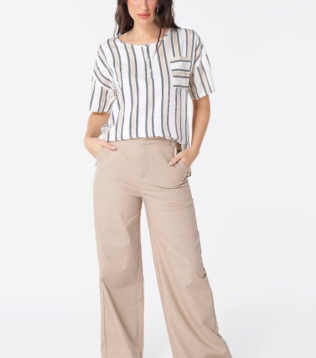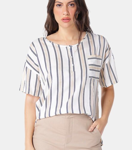 Blusa de Viscose com Mangas Listrada Bege Sob