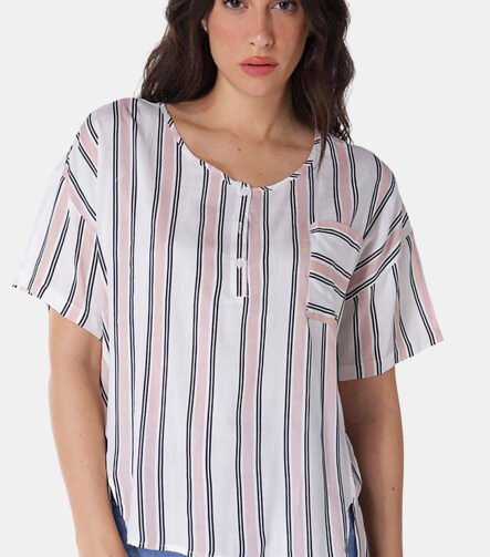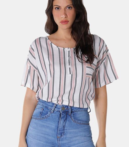 Blusa de Viscose com Mangas Listrada Rosa Sob