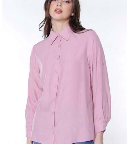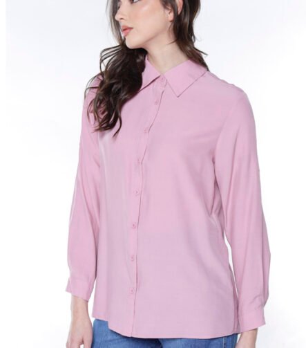 Camisa Feminina Maxi Lisa Manga Longa Fresca Sob Rosa