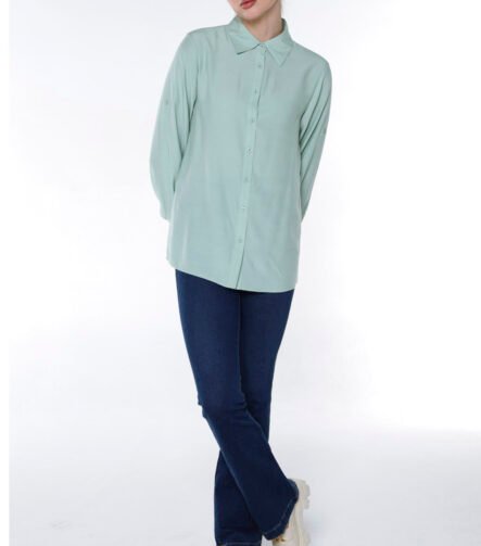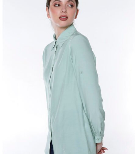Camisa Feminina Manga Longa Verde Clara Sob Viscose