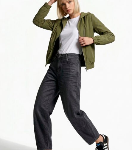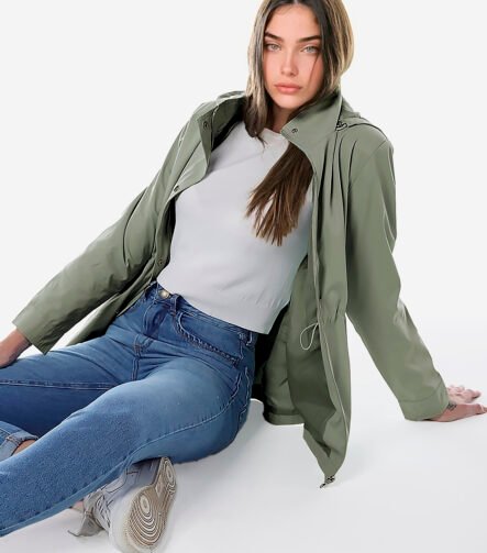 Jaqueta Verde Mitilar Forrada com Capuz e Bolsos Sob Bomber