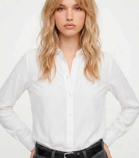 Camisa Branca Feminina em Viscose com Linho Manga Longa Sob