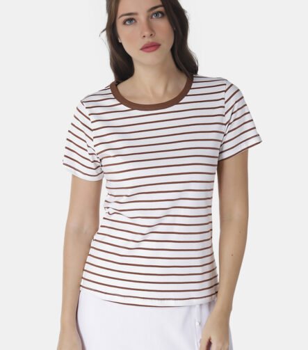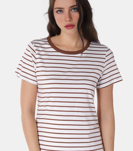 Blusa Feminina Listrada Marrom Retrô em Malha de Algodão