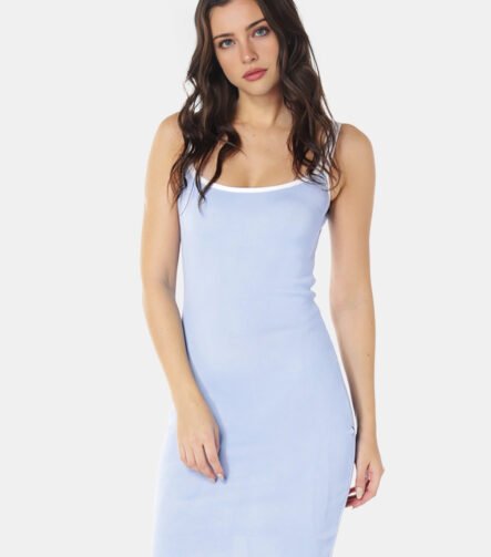 Vestido Midi Canelado Azul Claro em Viscose com Alças Brancas