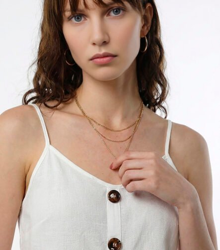 Vestido Midi Canelado Bege em Viscose com Alças Brancas