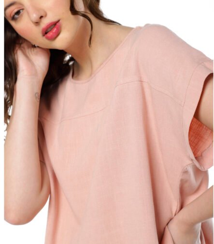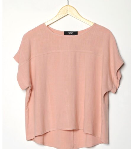 Blusa de Linho Manga Curta Sob Rosa Claro