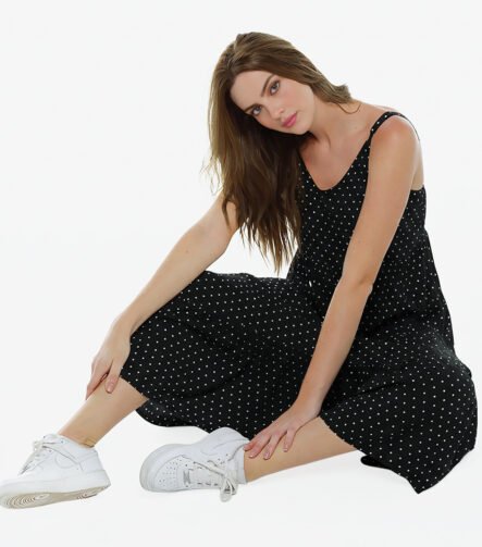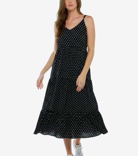 Vestido Longo Preto de Bolinhas Brancas Poá em Viscose