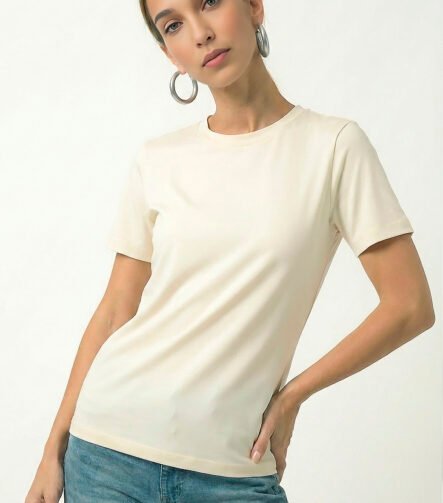 Blusa Bege Algodão Premium Toque Fresco Sob Manga Curta