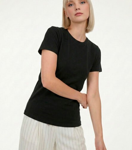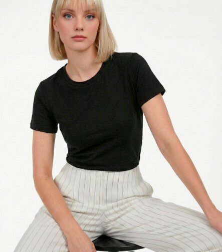 Blusa Preta Algodão Premium Toque Fresco Sob Manga Curta