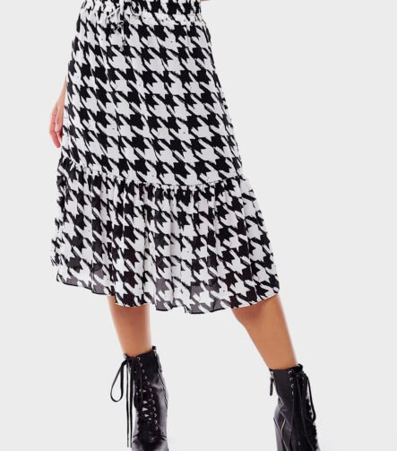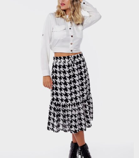 Saia Midi Xadrez Pied de Poule Crepe Preta e Branca Sob