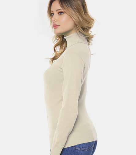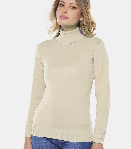 Blusa de Tricot Bege Gola Alta Manga Longa Justa