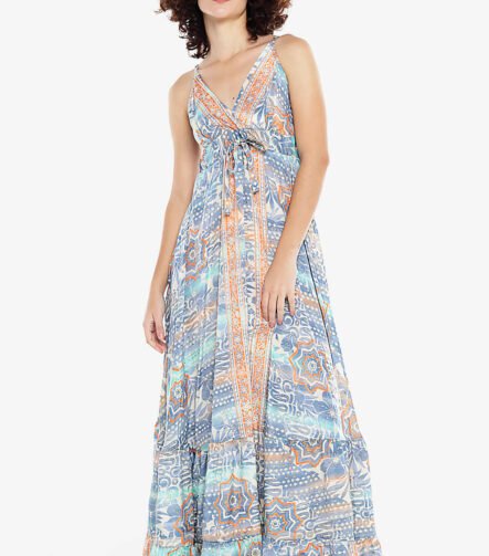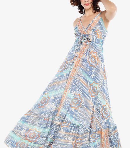 Vestido Longo Estampado Rodado Azul Claro Sob