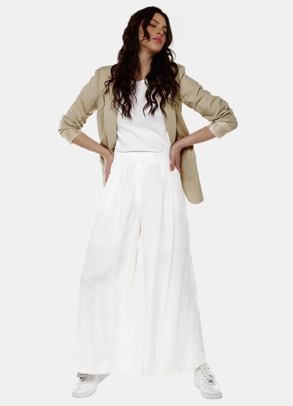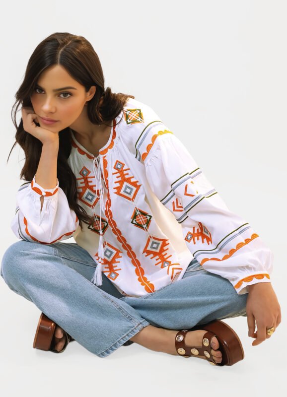 Blusa Branca Boho Bordada em Azul e Bege Viscose Sob