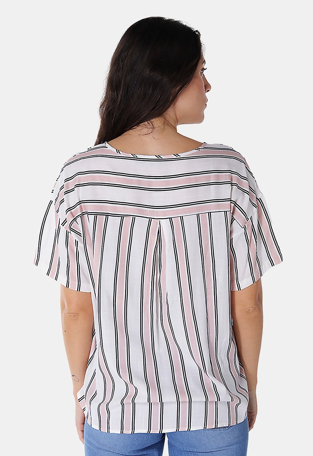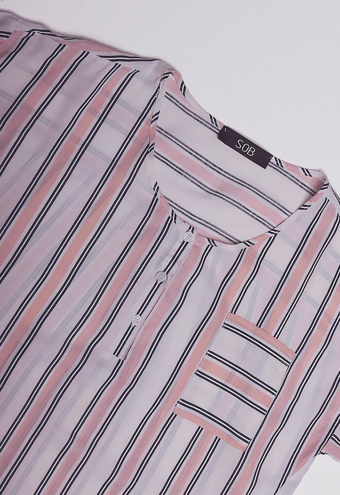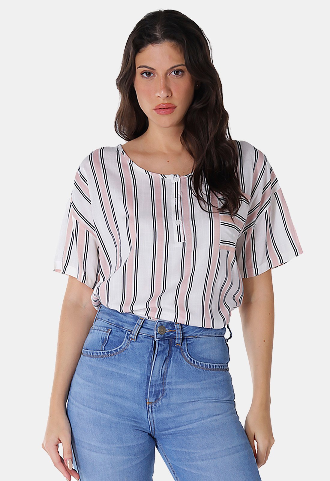 Blusa de Viscose com Mangas Listrada Rosa Sob