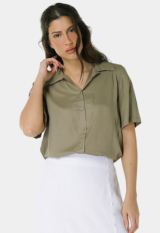 Blusa em Viscose Verde Manga 3/4 com Renda Guipir