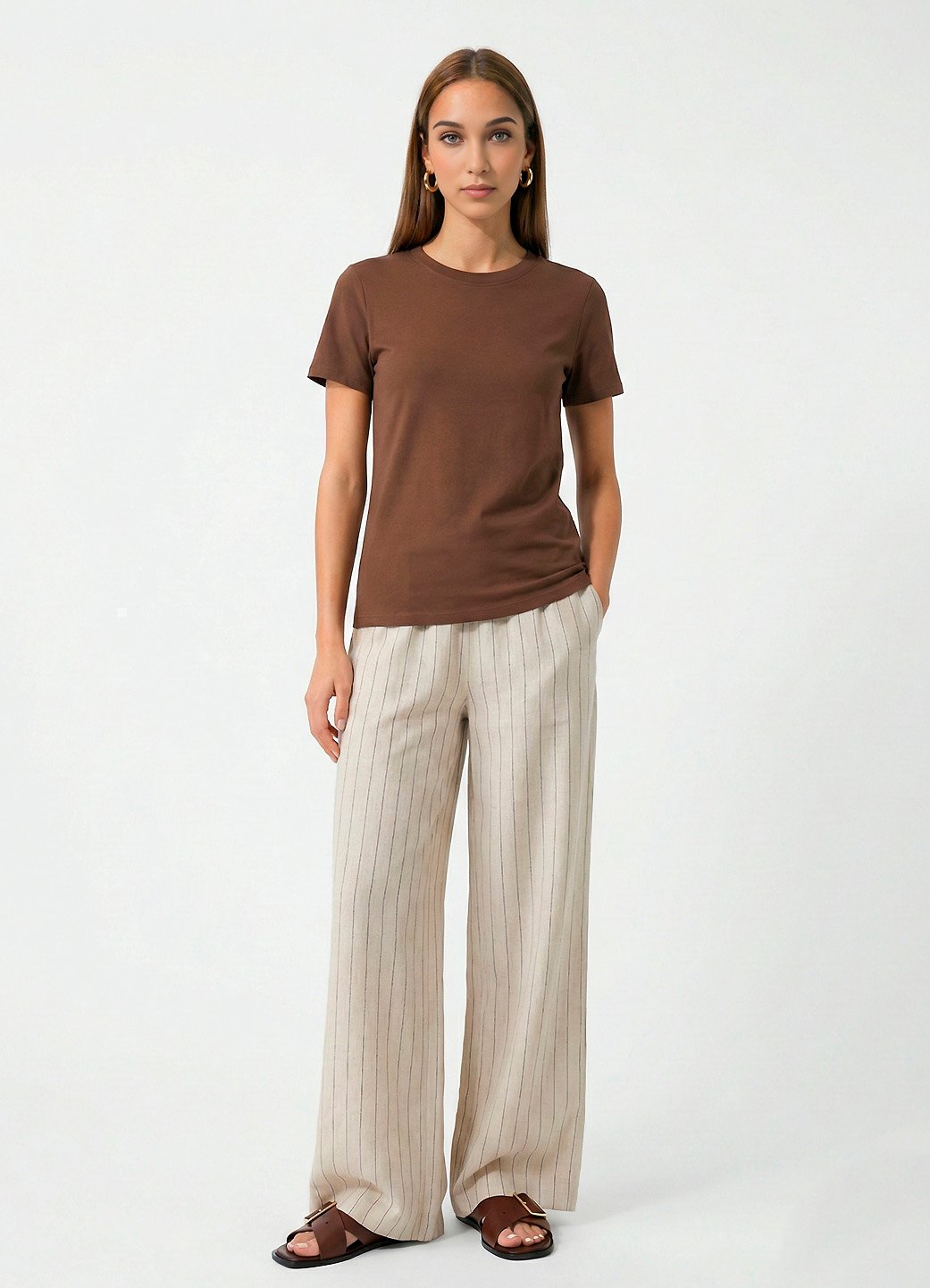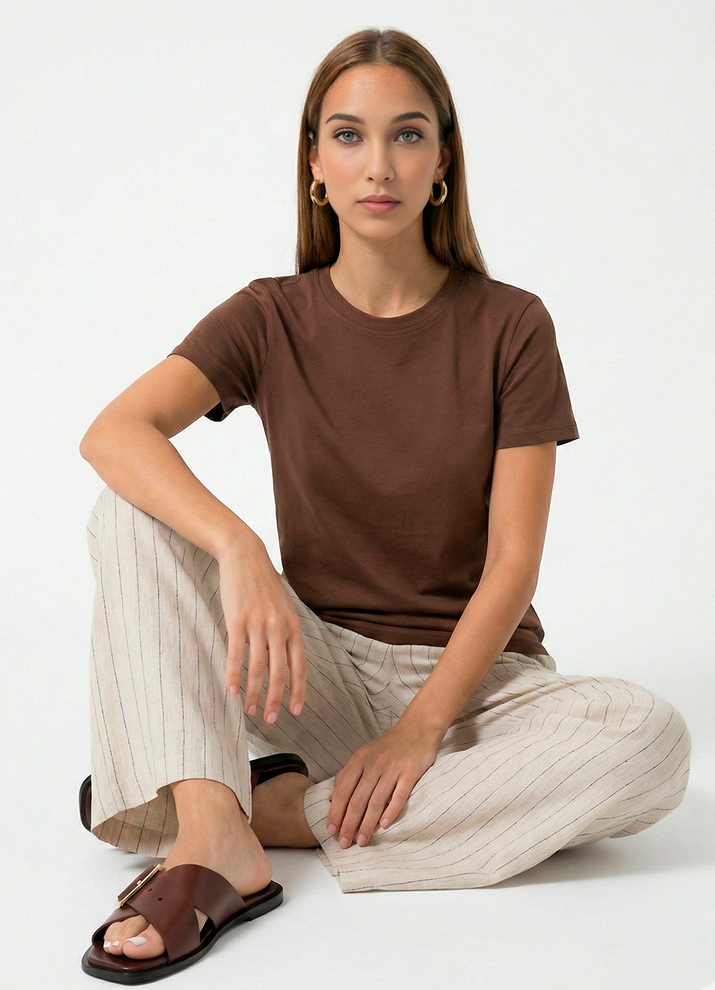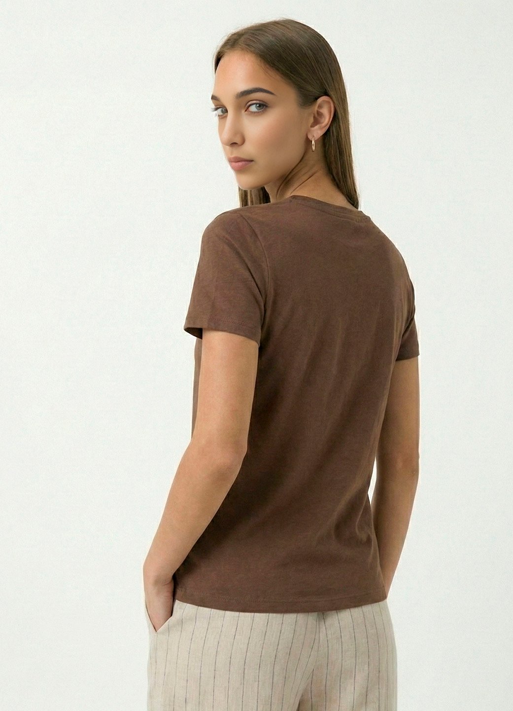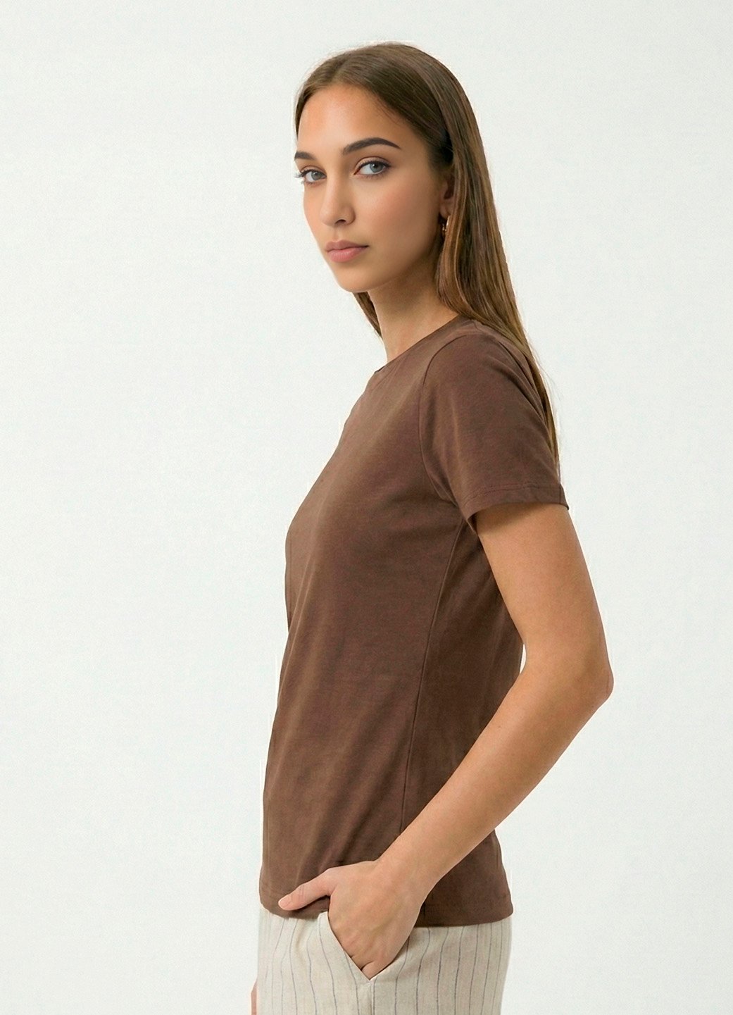 Blusa Marrom Algodão Premium Toque Fresco Sob Manga Curta