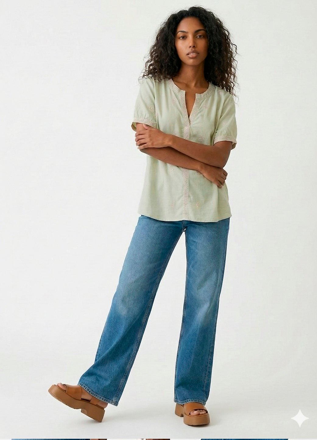 Cor: Verde claro bordado em bege claro.