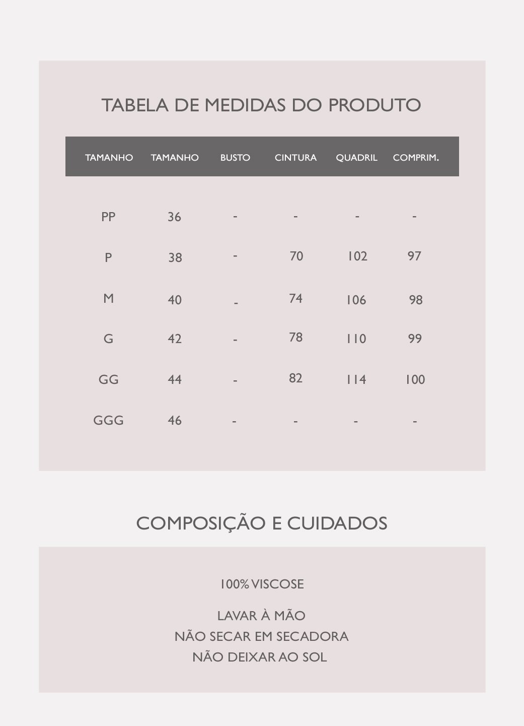 Tabela de medidas