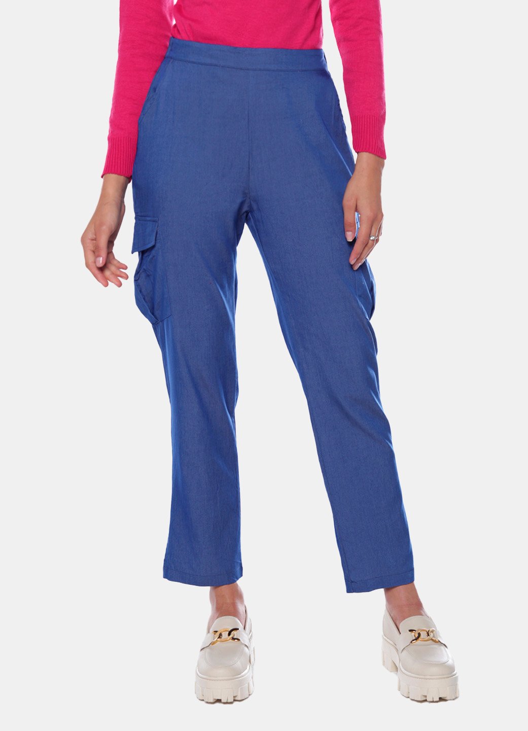 Calça Cargo Feminina Reta Sob Azul Médio