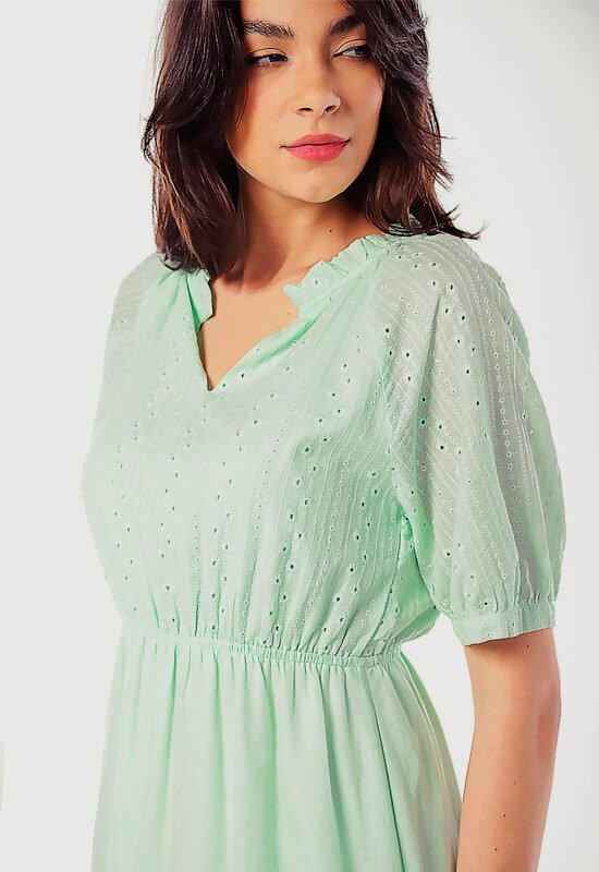 Modelo com 177 cm de altura, busto 86 cm, cintura 70 cm, quadril 96 cm, usa P/38