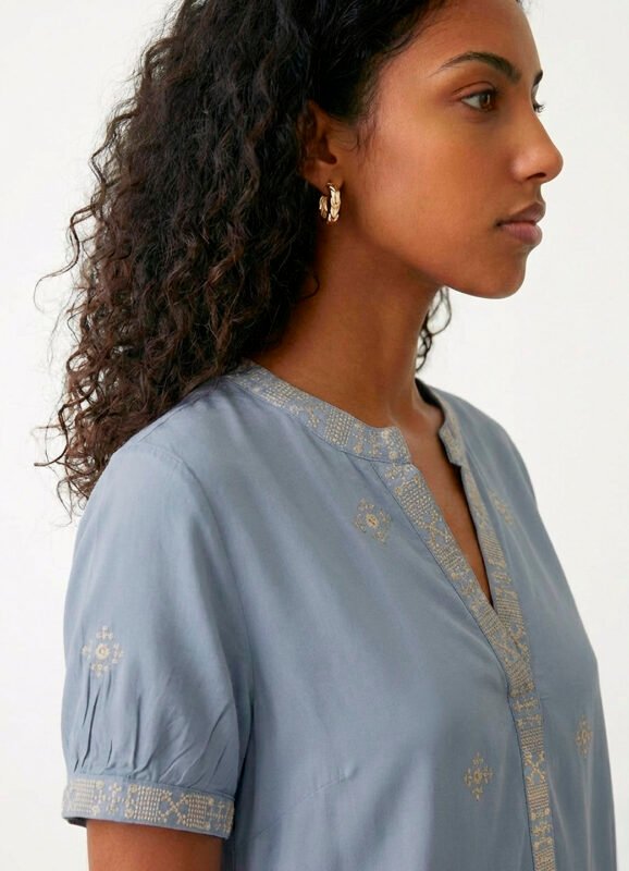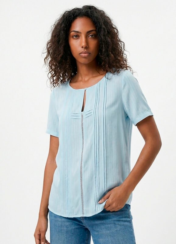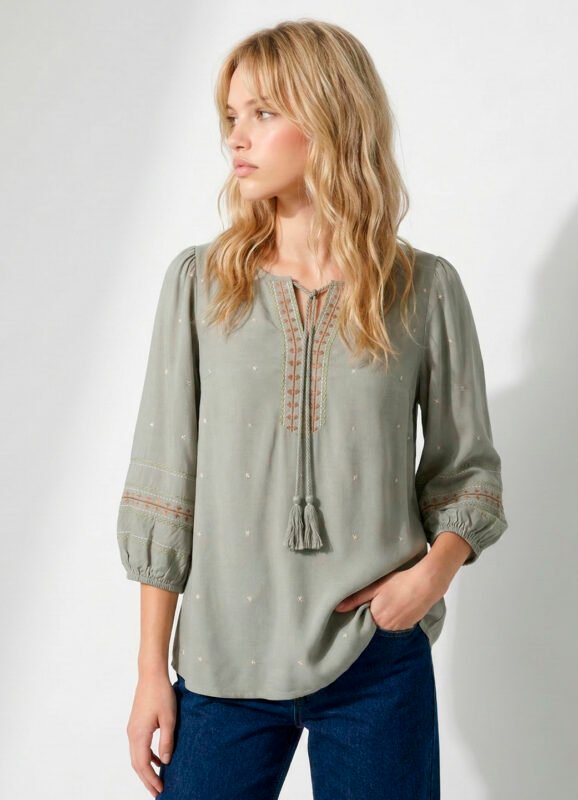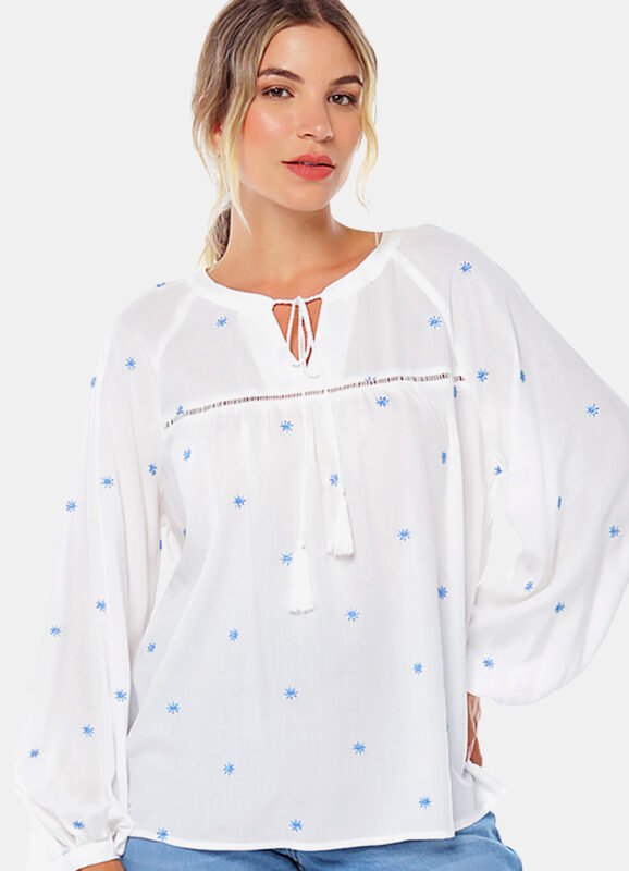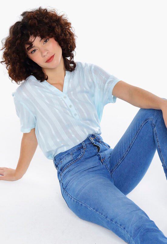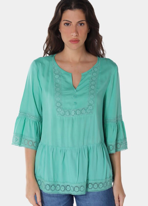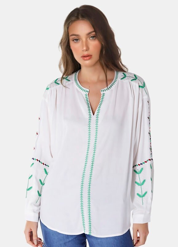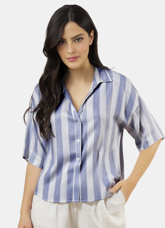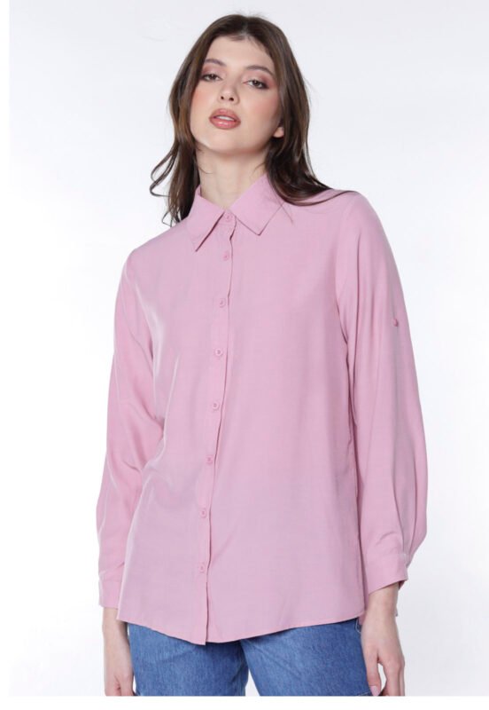 Detalhes: Camisa feminina manga longa, solta em viscose.Vista tradicional com botões da mesma cor. Mangas longas com punhos estreitos, com duas pregas e fechamento em botão. Barra reta na frente com leva curva atrás. Pala com franzido nas costas. Tecido fino, macio.