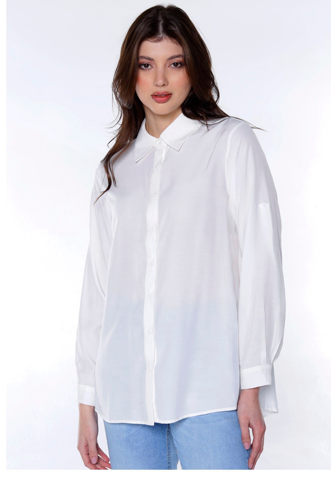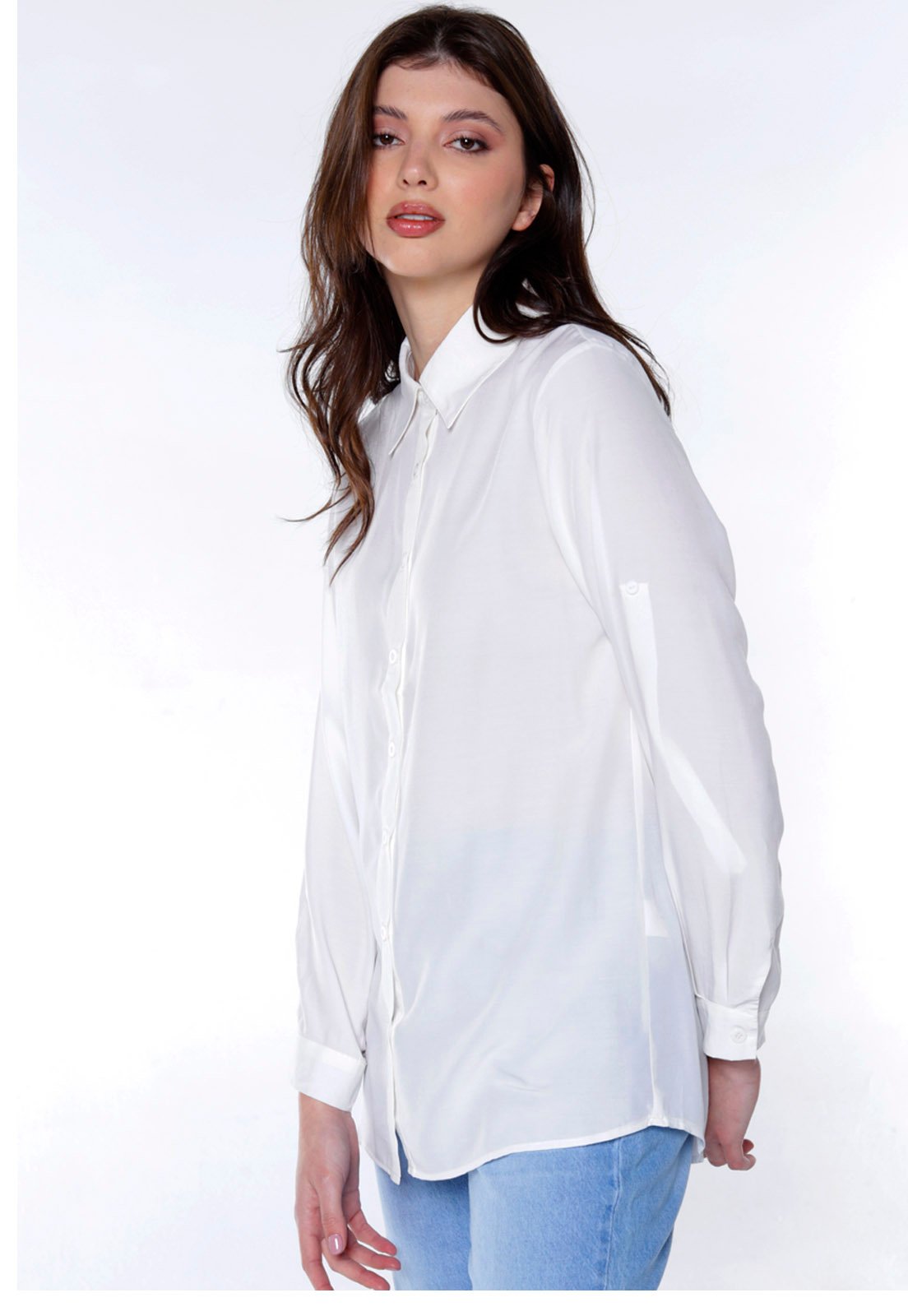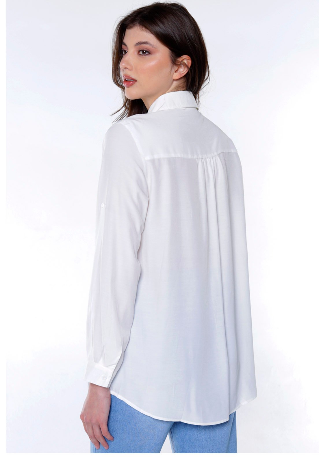 camisa lisa, camisa feminina, camisa fresca, camisa sofisticada, camisa chic, camisa branca, camisa longa.