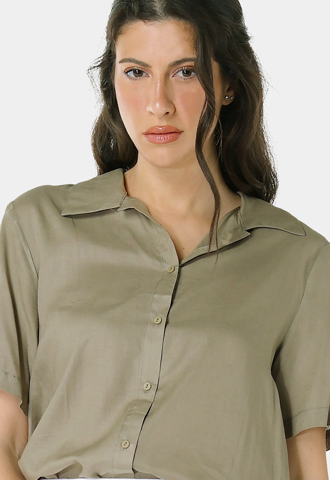 Detalhes:Camisa feminina em linho com mangas curtas. Frente lisa, com gola batida. Mangas curtas com barra. Palas nas costas com prega. Barra reta na frente, com costas mais longas arredondada. Tecido muito macio, fino, com excelente caimento.