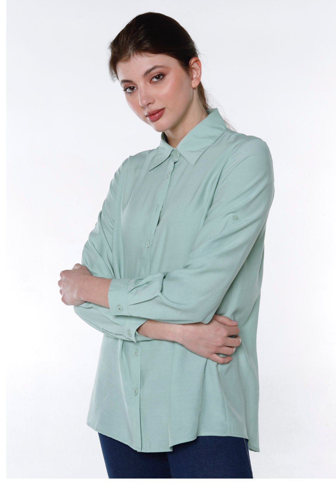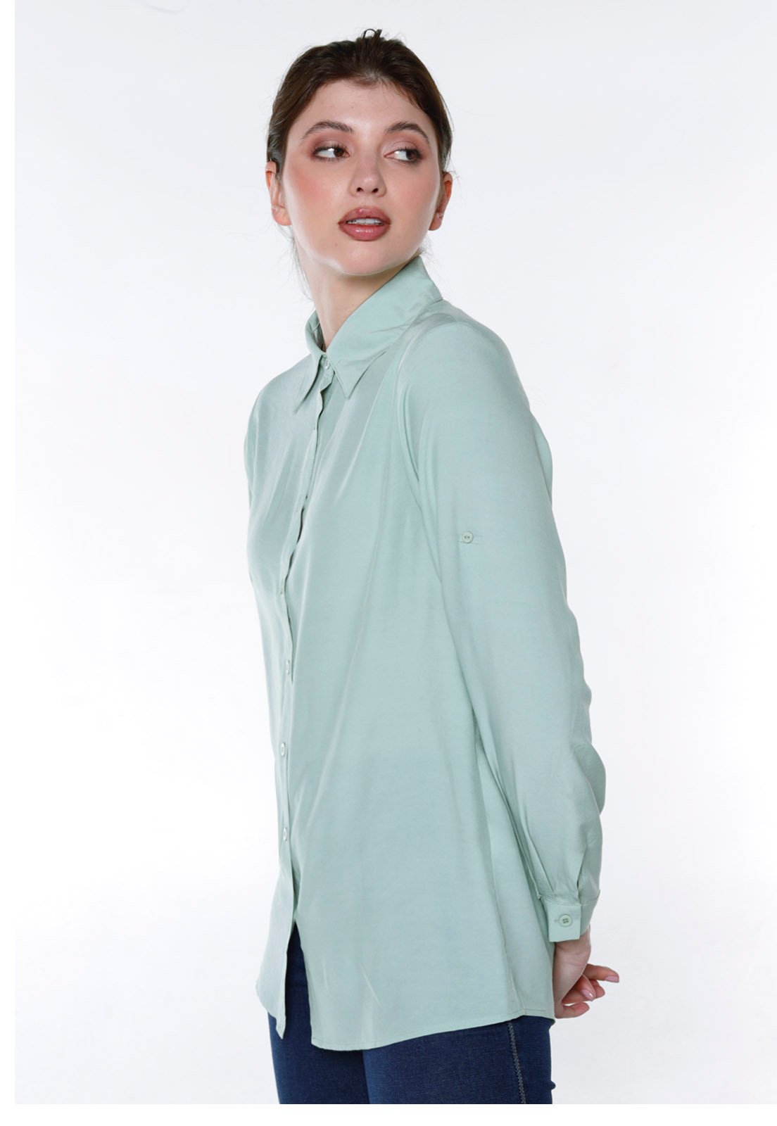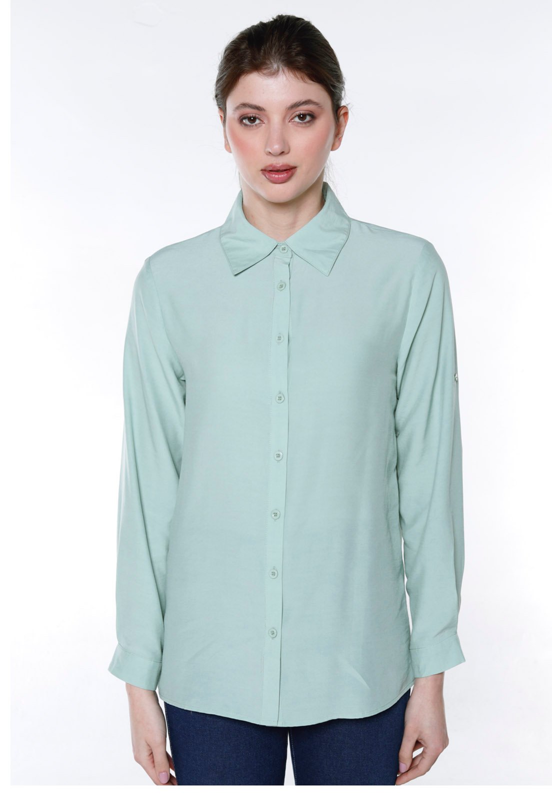 camisa lisa, camisa feminina, camisa fresca, camisa sofisticada, camisa chic, camisa verde, camisa longa.