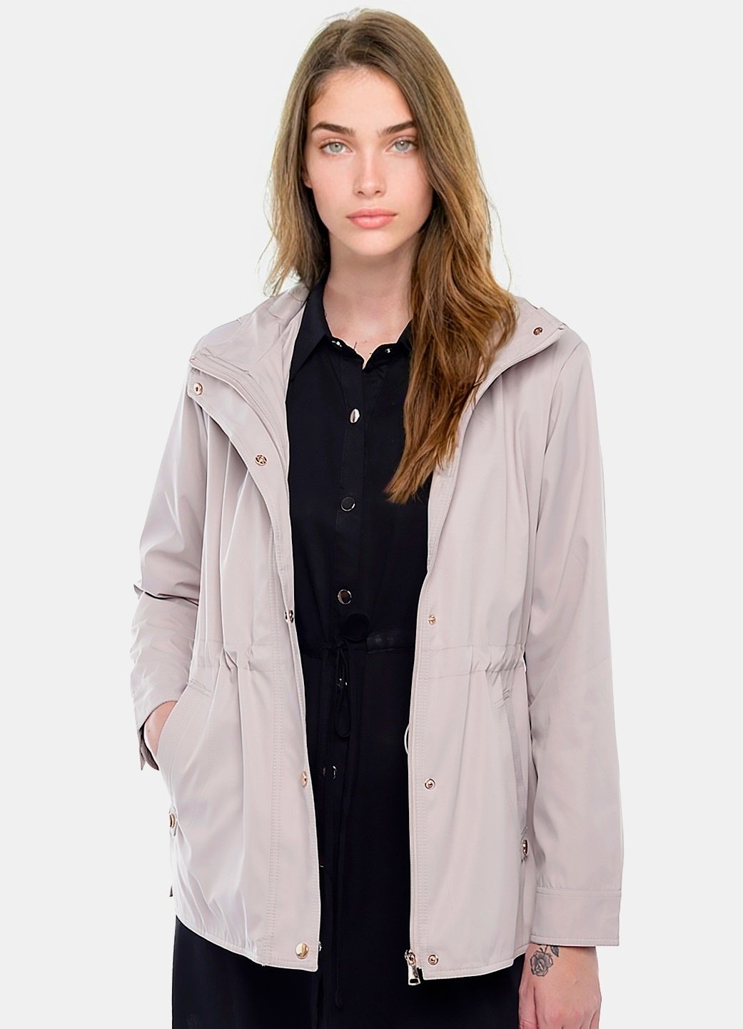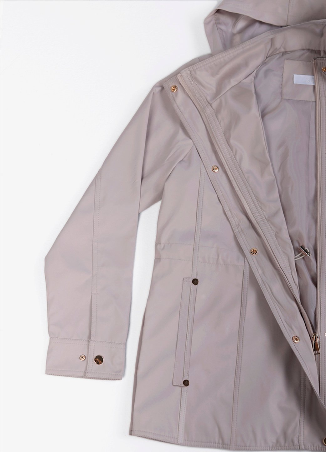 Detalhes: Parka feminina longa com zíper, forrada. Forro completo, inclusive no capuz. Capuz com zíper, pode ser tirado, acabamento coberto. Fechamento de vista dupla, com zíper destacável e botões de metal externos. Manga longa, forrada com fechamento em punho com dois botões para ajuste. Ombreira fina interna para melhor caimento. Ajuste de cintura interno, com canaleta, elástico e regulador. Tecido macio, fino, duplo, com estrutura, resistente à agua. Costuras pespontandas na lateral, frente e costas.