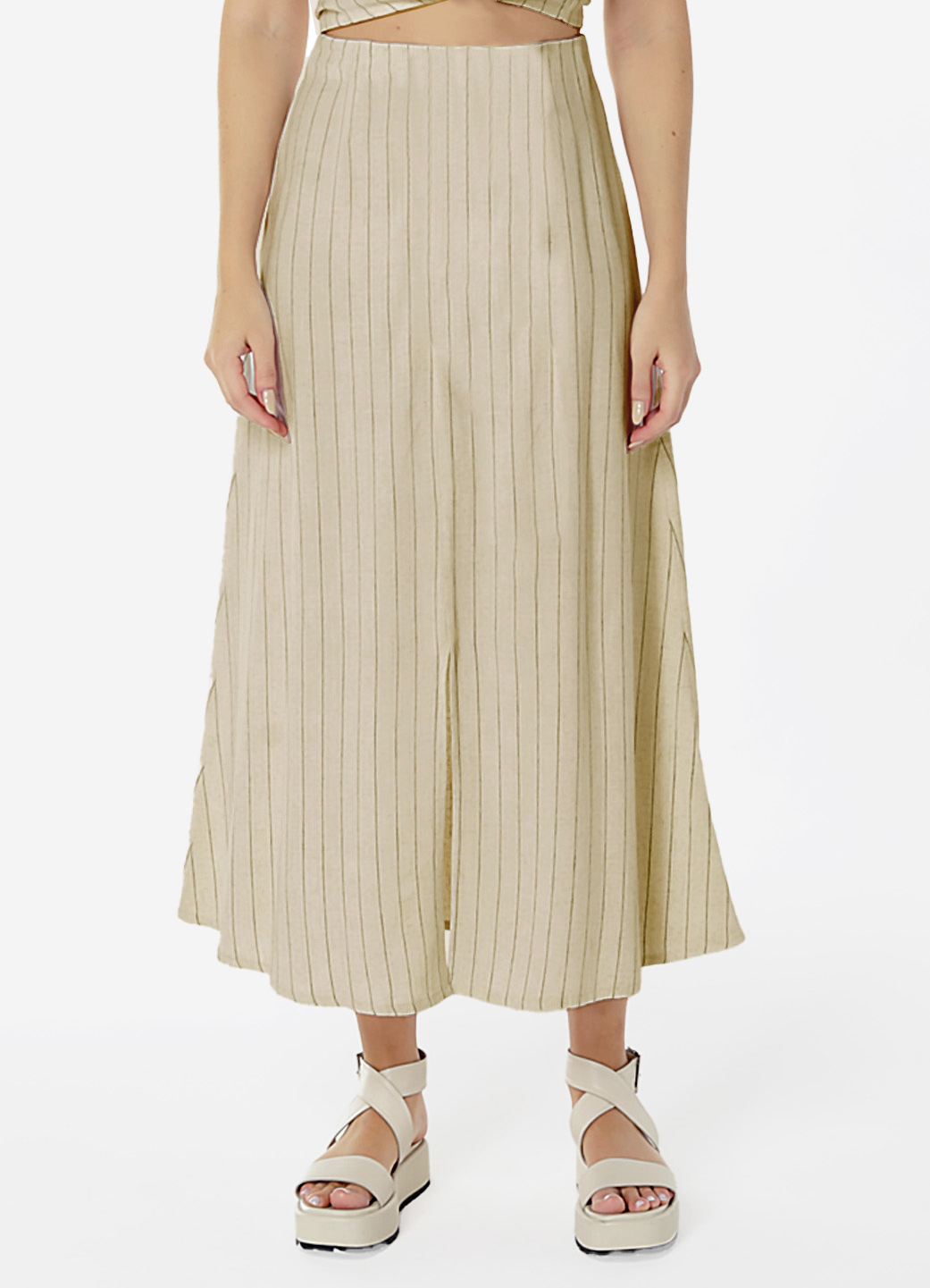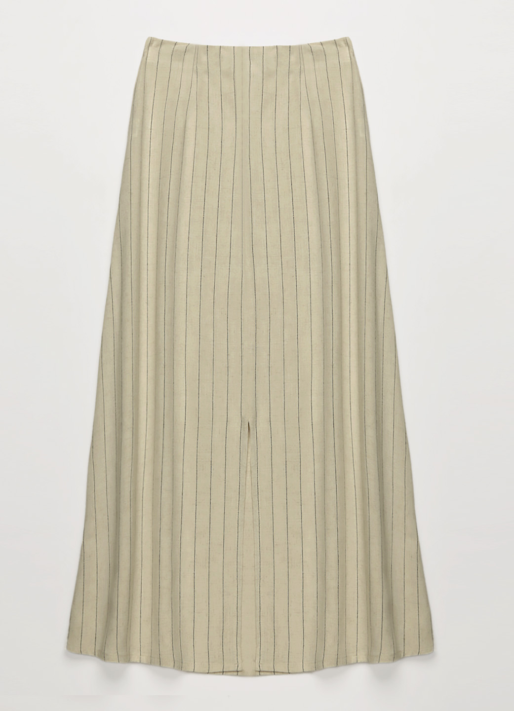 saia longa de linho, saia de linho, trends, look da moda, look elegante, look sofisticado, saia sofisticada, saia evasê longa. saia longa, saia branca de linho, saia de linho risca de giz.
