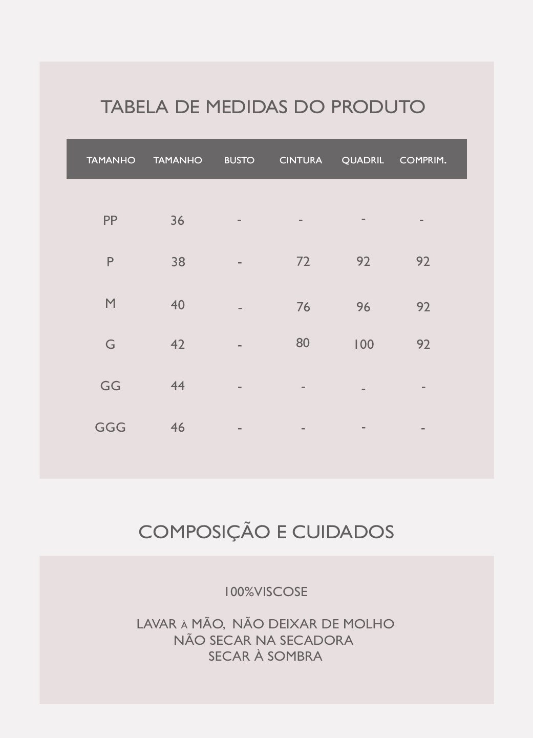 Tabela de medidas